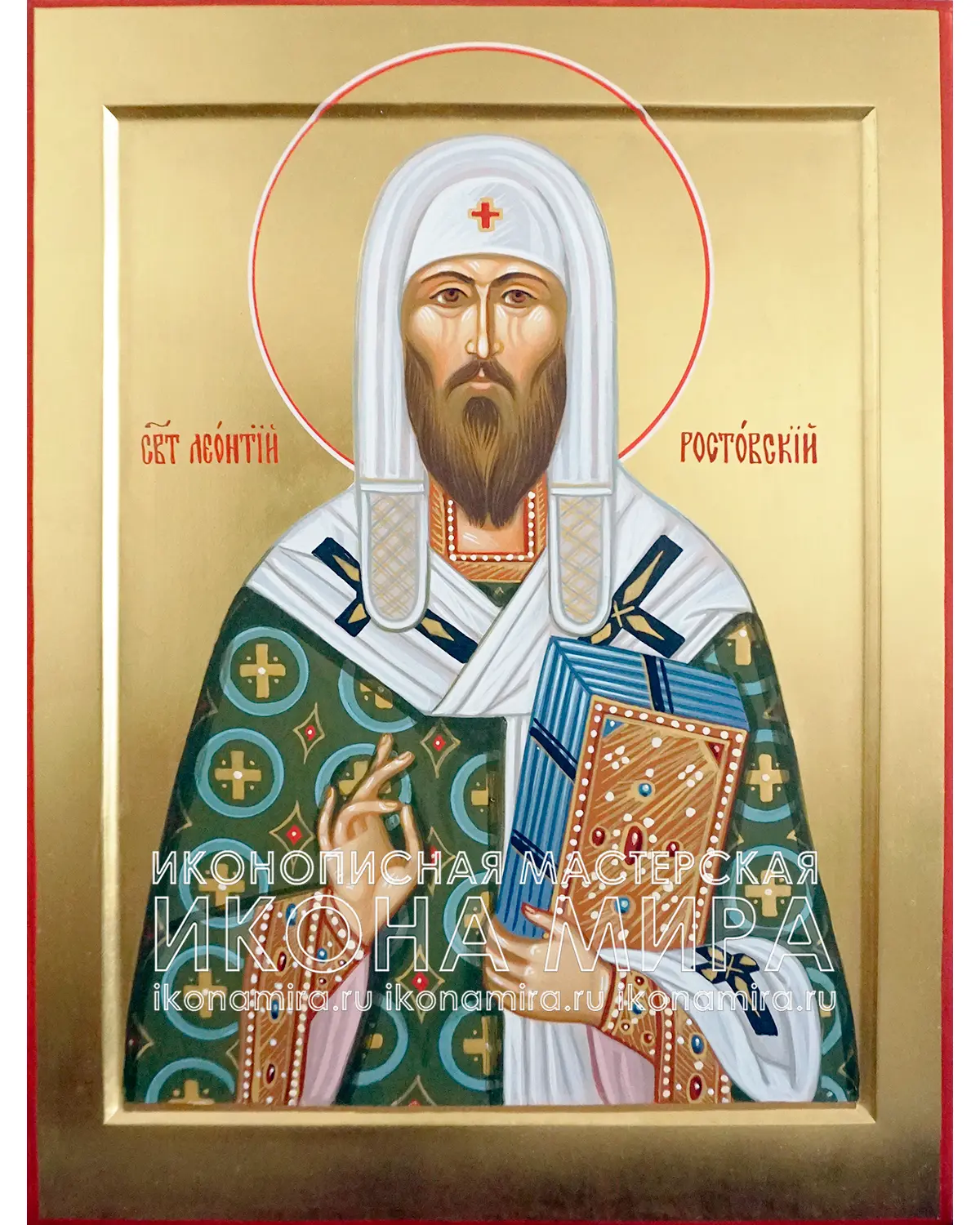 Святитель Леонтий был греком по происхождению и прибыл на Русь по благословению Константинопольского патриарха. В 1073 году он был поставлен епископом в город Ростов Великий, куда направляли многих миссионеров для просвещения местных народов, ещё державшихся язычества. Своей кротостью, молитвой и проповедью святитель обратил ко Христу множество людей, построил храмы, утвердил православную веру на земле Ростовской. Жил он аскетически, строго соблюдая посты и предаваясь трудам ради своей паствы. За свою пламенную проповедь и борьбу с идолопоклонством святитель принял мученическую кончину около 1077 года от рук язычников. Его мощи почивают в Ростове, в Спасо-Яковлевском монастыре.