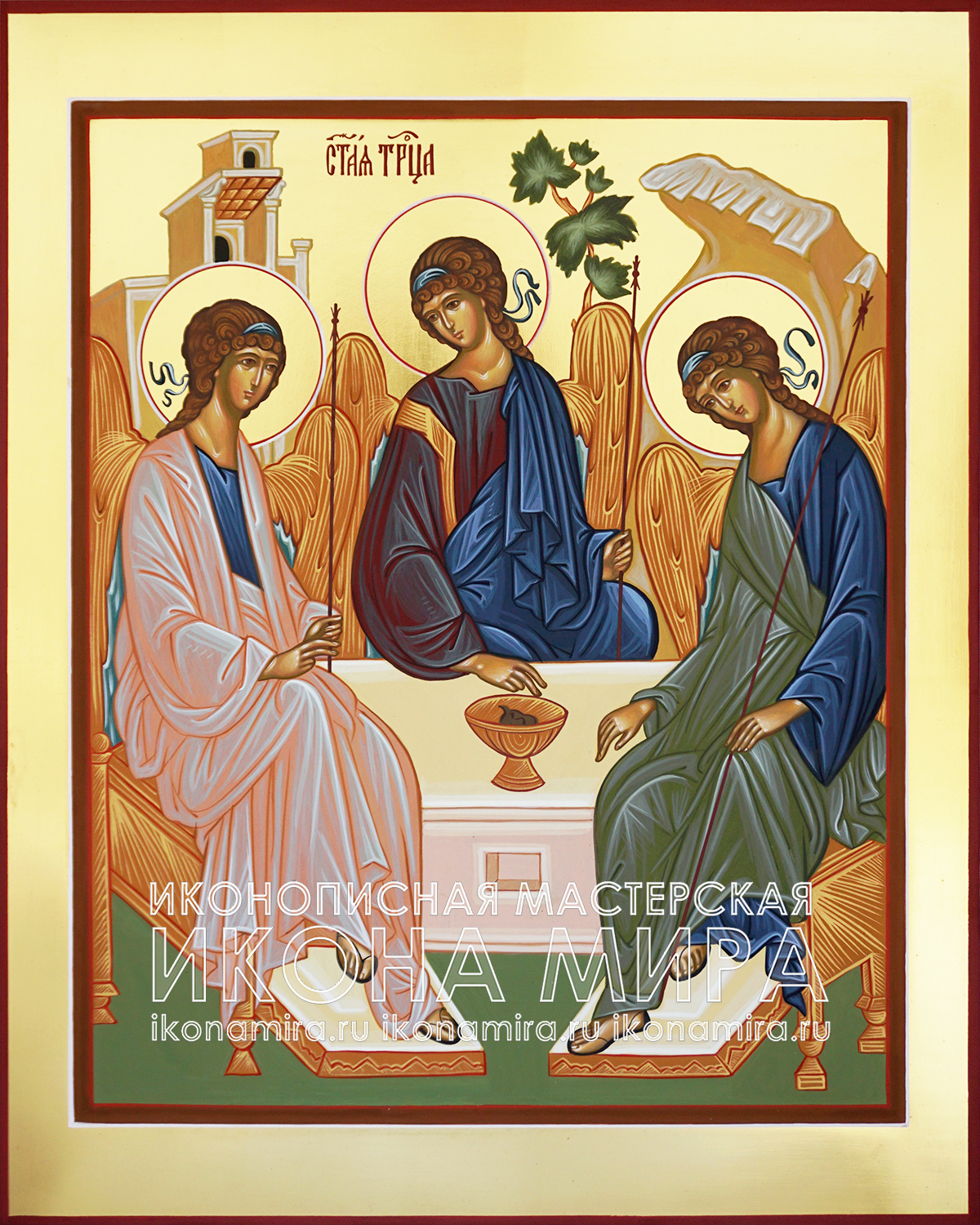 Православные иконы Святой Троицы ручной работы на заказ в Москве недорого с доставкой