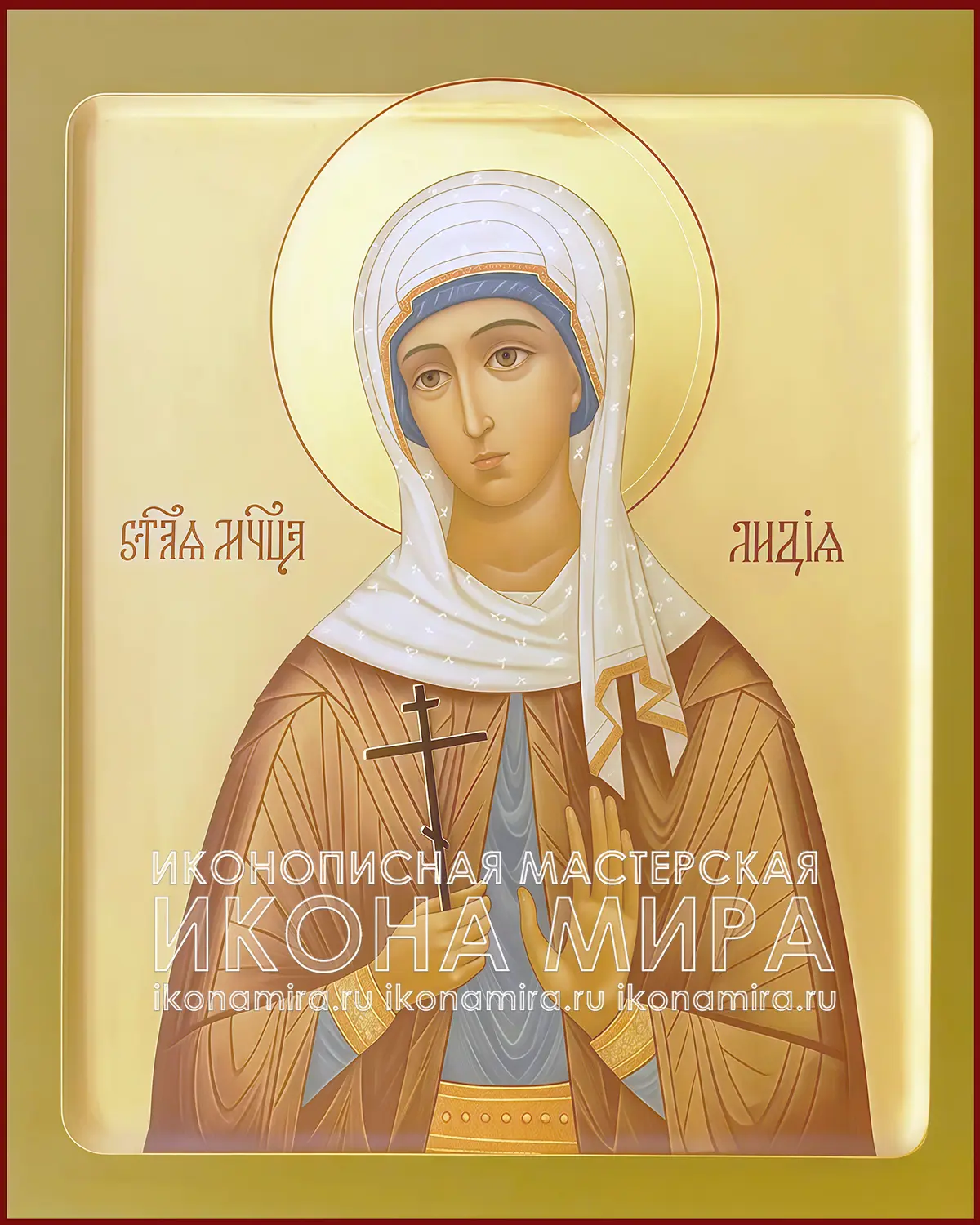 Святая Лидия родилась в городе Тиатиры, что в области Лидии (в Малой Азии). Её имя означает «лидийка» — по названию родной земли. Лидия занималась торговлей пурпурными тканями, которые ценились как символ богатства и царственности. Она была женщиной честной, трудолюбивой и богобоязненной, почитала истинного Бога, хотя ещё не знала Христа. Во времена своих торговых поездок Лидия жила в македонском городе Филиппы. Там, у реки, где женщины собирались для молитвы, она впервые услышала проповедь апостола Павла. Слова его коснулись её сердца: Евангелие Христово она приняла с верой и радостью. По словам книги Деяний апостолов, «Господь отверз сердце её внимать тому, что говорил Павел». Лидия и весь её дом крестились. После крещения она с горячей любовью пригласила апостола Павла и его спутников жить в её доме, сказав: «Если вы признаёте меня верной Господу, войдите и оставайтесь у меня». Так её дом стал первым христианским домом — и первой домашней церковью — на европейской земле. Лидия с ревностью помогала апостолам, принимала братьев и сестер во Христе, поддерживала проповедь Слова Божия своими трудами и средствами. За это Церковь называет её «равноапостольной», то есть приравнивает по заслугам в деле веры к апостолам Христовым. Конец её земной жизни был мирным: она скончалась, сохранив чистую веру и преданность Христу до конца.